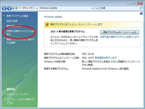 <1>[Windows Update]メニュー画面左側の[非表示の更新プログラムの再表示]を左クリックします。