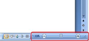 ウィンドウ右下にあるのが表示倍率を変更する「ズームスライダ」です。【−】、【+】のボタンをクリックするか、スライダをドラッグすると表示倍率が変化します。