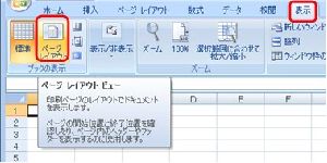 (1) 【表示】タブの【ブックの表示】グループ内の【ページレイアウト】をクリックするとページレイアウトに変更できます。
