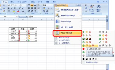 3〜5種類のアイコンで、セル全体を分類できます。(表示手順は3.2.1の(1)〜(3)同様)