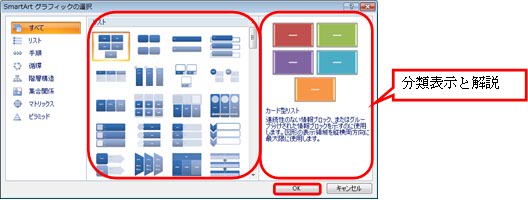 (2) ダイアログボックスが開かれるので、分類表示と解説を確認しながら使用したい図を選択し【OK】をクリックして下さい。