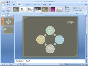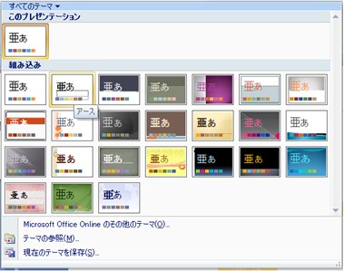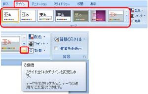 その他にはWord 2007の「クイックスタイル」同様【テーマ】を設定し、統一感のあるデザインに設定することができます。