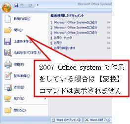 (2)2007 Office system 形式に変換するには、まず【Office】ボタンをクリックし【変換】をクリックします。