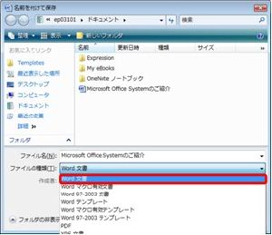 (6)【Word文書】で保存する事により、以前のOfficeで作成したファイルと2007 Office systemで作成したファイルを残せるので、簡単に見分ける事が出来ます。