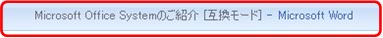 Office 97-2003で作成した文書を2007 Office systemで編集しようとすると[互換モード]でファイルが開きます。2007 Office systemの機能をフルに活用する場合、ファイルを2007 Office system形式に変換し保存して下さい。