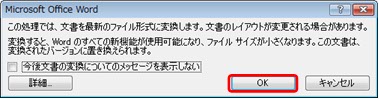 (3)変換に関する注意事項が表示されますので、【OK】をクリックして下さい。