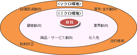[U] 外部の「経営環境分析」をする場合には、マクロとミクロとの経営環境に分けて考えます。