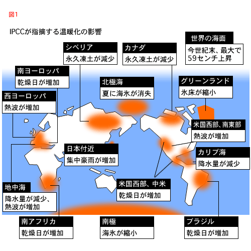 IPCCが指摘する温暖化の影響は図1のごとくです。