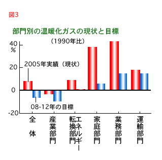 何しろ日本は、1990年度比で2008〜2012年の間に 温室効果ガスの排出を6%削減する必要があります。