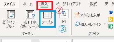③「テーブル」をクリックします。