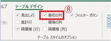 ⑧「テーブルデザイン」では表のデザインを変更することができます。