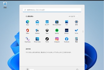 左下に配置されていた「スタートボタン」とタスクバーのアプリがまとめてセンタリングされました。これまでのような左配置の方が使いやすいという人はアプリを左寄せに変更することも可能です。