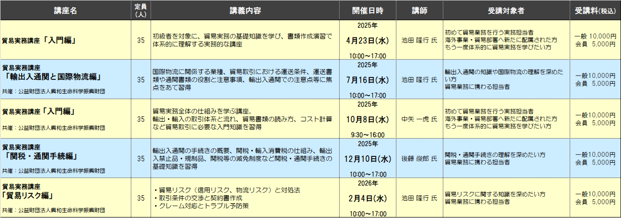 - 2025年度「貿易実務講座」のご案内